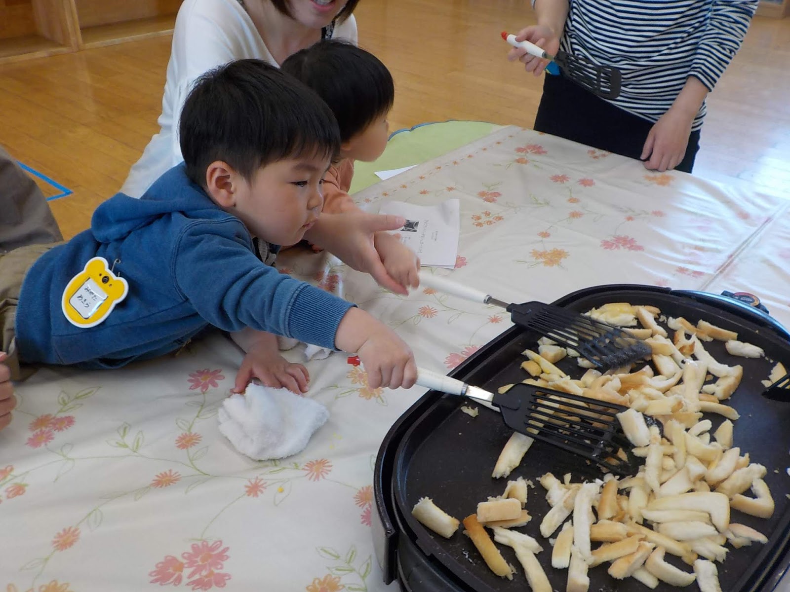 混ぜる作業もやりたくてたくさん手を伸ばして混ぜ混ぜしてくれていました。